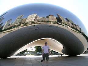 Today was all about exploring downtown Chicago. I started off at the new Millennium Park which had some very interesting monuments. There's the Crown Fountain which is two big blocks facing each other and people's moving faces projected onto them. After some blinking and smiling, the person forms their mouth into an "O" and out pops a stream of water that splashes onto the pavement. There's also the Cloud Gate, more affectionately known by the locals as the Giant Bean, that's a huge polished bean shaped hunk of steel that creates some interesting effects like a reflection of the Chicago skyline. There's also a Gehry outdoor auditorium, which, well, I can't describe in words. You'll have to look at the picture.