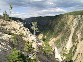 It was starting to get a little late so I drove down to the final stop for the day: The Grand Canyon of Yellowstone. I was thinking "yeah it should be interesting, but I've been to the real Grand Canyon so how great could it be?". Well, how surprised I was! Yeah, the canyon's not that big, especially compared to the one in Arizona, but it was gorgeous, mostly because of the colours in the rock. Since it's an active volcanic area, there's a lot of sulphur in the rock which adds a lot of yellow and orange to the canyon walls making it beautiful. Also, I got there at the right time of day, in the perfect weather. The sun was low enough that the shadows were long enough to highlight some interesting releif in the canyon. Plus, it was scattered clouds, so, the clouds' shadows creating some amazing lighting upon the winding terrain. I know the pictures don't quite capture the majesty of the place, but here's a glimpse.