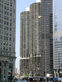 After getting out of the Field Museum, I bolted to the docks for the tour and got there with only about 2 min to spare. The tour itself was excellent. It cruised up the Chicago river around the downtown core while the guide pointed out the salient points of every building including usually some of the history. It was quite interesting. I'd have to say that my favorite building is Marina City which looks like a corncob. The weirdest thing about it is the parking. All through the bottom floors is a spiral parking structure where you have to very carefully back into your spot, making sure not to go too far and drive off the building. It makes an interesting visual effect with all the car backs popping out of the building. The tour guide also pointed out that the condo units provide an interesting interior decorating challenge because the floor plan is shaped like a pie wedge. Also, during the tour, we got the added bonus of watching the Blue Angels practicing for the air show that was going to happen on the weekend. Unfortunately, I couldn't stay to see it :-(