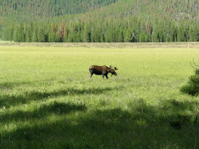 Anyway, I went up to the canyon enjoying the scenery, had some food and headed back towards the trailhead. Unfortunately, at this point, my leg was starting to flare up even though the total hike was only going to be 9 miles. I really couldn't do much except grit through it since I wasn't thinking and didn't bring my IBProufen with me. At least the way back was eventful. I managed to see a marmot, a female moose and a gorgeous elk bull.