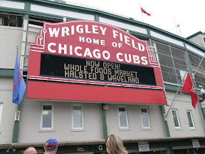 After a while, I set off again. I arrived at Wrigley a little early, so I picked up my tickets and moved on to explore the area. Right around Wrigley, the aptly named Wrigleyville district, it reminded me of Landsdown street right around Fenway; it was basically filled with bars and souvenir shops.