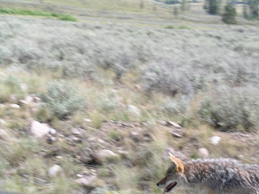 On the way, I had to stop to at one point because some wildlife was crossing. Not just any wildlife, a coyote! It was amazingly used to the road. When I saw it, it was waiting patiently at the side of the road until traffic cleared. I stopped to let it pass in front of the car and it even waited until it was very clear that I was going to let it cross. After it crossed, I managed to get a quick picture of it, but it was a bad, blurry picture as I was driving along beside it and trying to snap the photo.