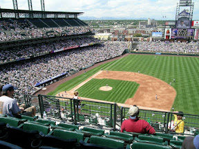 The game itself was pretty enjoyable. The Cubbies were in town so there were a bunch of Cubs fans but even with that support, the Rockies won 6-3. I know this may seem weird given that it's a newer style park, but I really wasn't too impressed with it. Sure, it had a nice view of the mountains and a purple row of seats in the upper deck marking the mile high line, but it just didn't seem to have much in the way of character. It was just too similar to all these new ballparks and didn't have much to make it stand out. Sure, it's definitely better than all the 60's monstrosities that used to be around the major leagues, but it just didn't speak to me.
