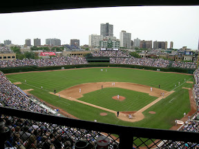Finally, it was getting close enough to game time that I went back to Wrigley. The park was gorgeous. It was just so classic. The only ads in the whole place were on the two doors in the outfield, the scoreboard was done by hand and the ivy was a beautiful emerald green. In contrast to Fenway, it was a very symmetric park so there wasn't much in the way of nooks and crannies. However, like Fenway and its Monster Seats, Wrigley has come up with a novel way to add more seats as the fan base has grown. I have to say I like the Wrigley solution more, just because it's so funny. There are seats on the roofs of all the buildings across the road from the park. I'd known about this before and that at one point the Cubs were upset that people were capitalizing on the entertainment they were providing so they were talking about putting up opaque nets. However, they apparently reached a rev share deal with the building owners so that everybody's happy and Wrigley gets some of the most interesting stands in baseball. Out of curiosity, I looked into the price for a seat on one of the buildings well beyond the outfield fence. They're all catered seats and you basically have to buy a large portion of the roof to go, but they come out to well over $100 a seat. Kind of crazy methinks.